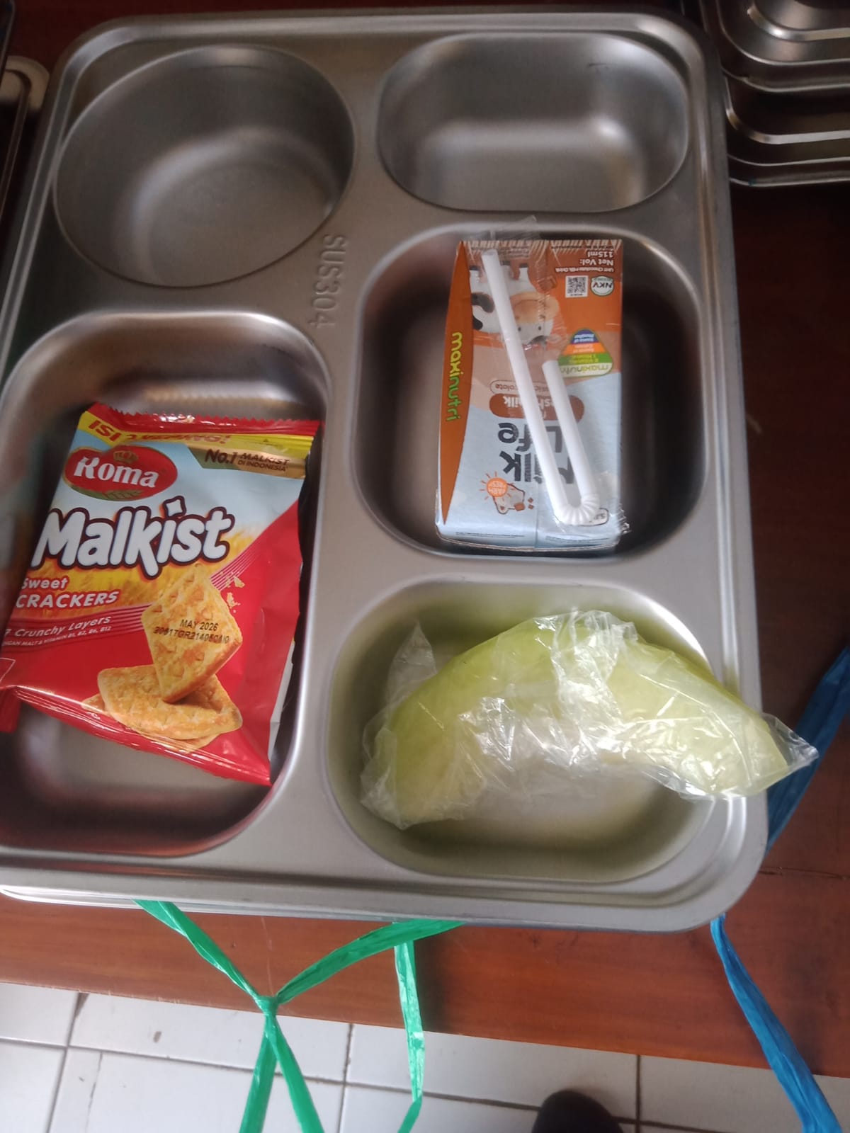 Pasal nya menu yang di sajikan cuma tiga jenis makanan ringan seperti susu kotak kecil dengan merk milk life , jeruk , & kue ROMA SARI GANDUM.Yang kebetulan di salur kan atau di sajikan olehSatuan pelayanan pemenuhan gizi ( SPPG ).
