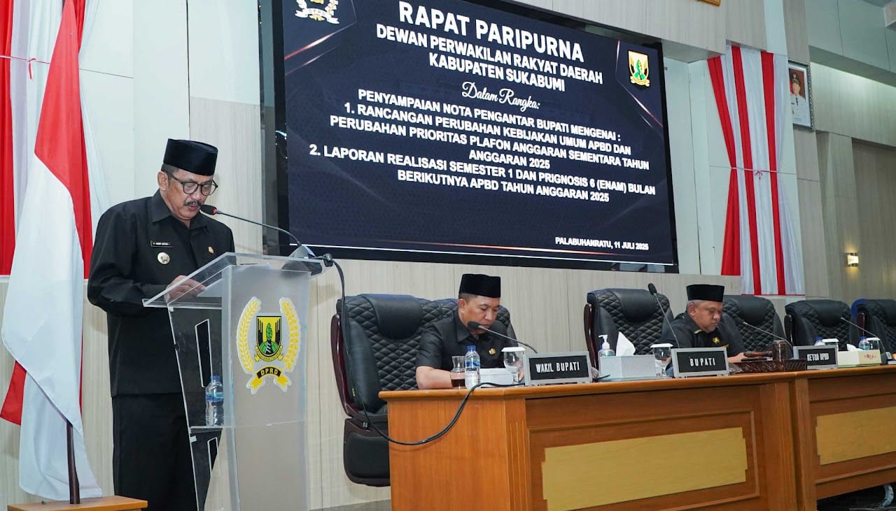 Rapat Paripurna dipimpin oleh Ketua DPRD, Budi Azhar Mutawali, S.IP, didampingi Bupati Sukabumi, Drs. H. Asep Japar, MM, Wakil Bupati Sukabumi H. Andreas, SE, serta anggota DPRD, unsur Forkopimda, kepala perangkat daerah, para Camat se-Kabupaten Sukabumi, dan tamu undangan lainnya.Bupati Sukabumi, Drs. H. Asep Japar, MM., menyampaikan Nota Pengantar terkait Rancangan Perubahan KUA dan Perubahan PPAS Tahun Anggaran 2025.