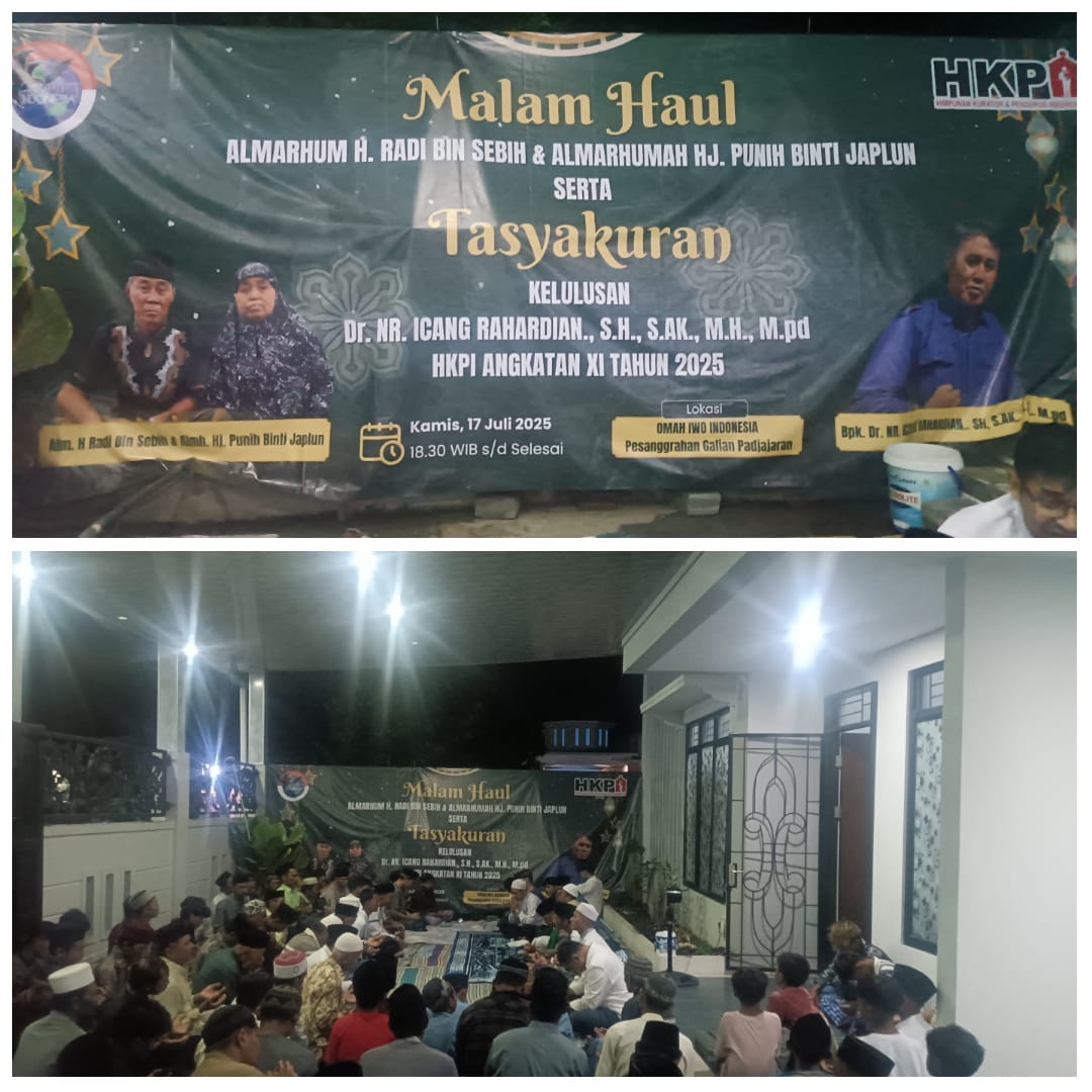 BEKASI,-Kalibernews.net.-//- Ketua Umum Ikatan Wartawan Online (IWO) Indonesia menggelar acara malam haul untuk mengenang dan mendoakan kedua orang tua almarhum H. Radi Bin Sebih dan almarhumah Hj. Punih Binti Japlun. Acara ini juga dimeriahkan dengan syukuran kelulusan Dr. NR Icang Rahardian, SH., S.AK., M.H., M.Pd. di Desa Sukakerta Kecamatan Sukawangi Kabupaten Bekasi, Kamis (17/7/25).
