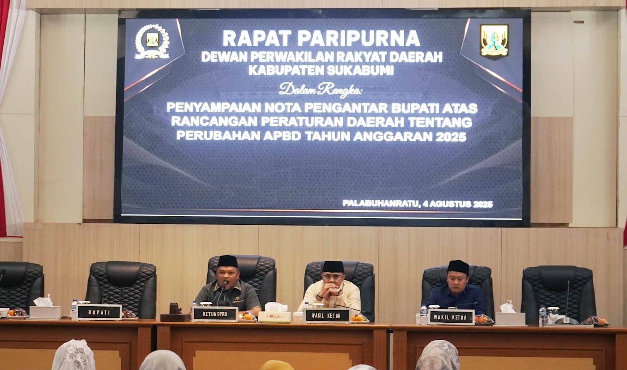 Sukabumi.-Kalibernews.net.-//-Dewan Perwakilan Rakyat Daerah (DPRD) Kabupaten Sukabumi menggelar Rapat Paripurna ke-28 pada Tahun Sidang 2025 dengan agenda Penyampaian Nota Pengantar Bupati Atas Rancangan Peraturan Daerah Tentang Perubahan APBD Tahun Anggaran 2025. Acara tersebut berlangsung di Ruang Rapat Utama DPRD pada Senin, (04/08/2025).