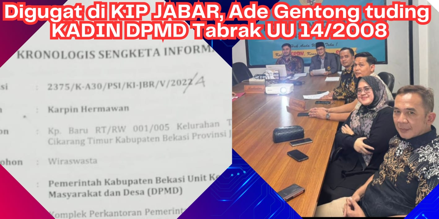 Kabupaten Bekasi.-Kalibernews.net.– Ade Gentong Tokoh Kabupaten Bekasi mengkritik keras terkait penghargaan predikat Kabupaten Informatif yang diterima oleh Kepala Dinas Kominfosantik Kabupaten Bekasi, pada tahun lalu, Ade Gentong menjelaskan kepada awak media Selasa (6/8/2025) bahwa dinas pemberdayaan masyarakat desa (DPMD) dibawah kepemimpinan Rahmat Atong telah mencoreng nama baik kabupaten Bekasi dengan adanya gugatan ke Komisi Informasi Publik (KIB) Jawa Barat.