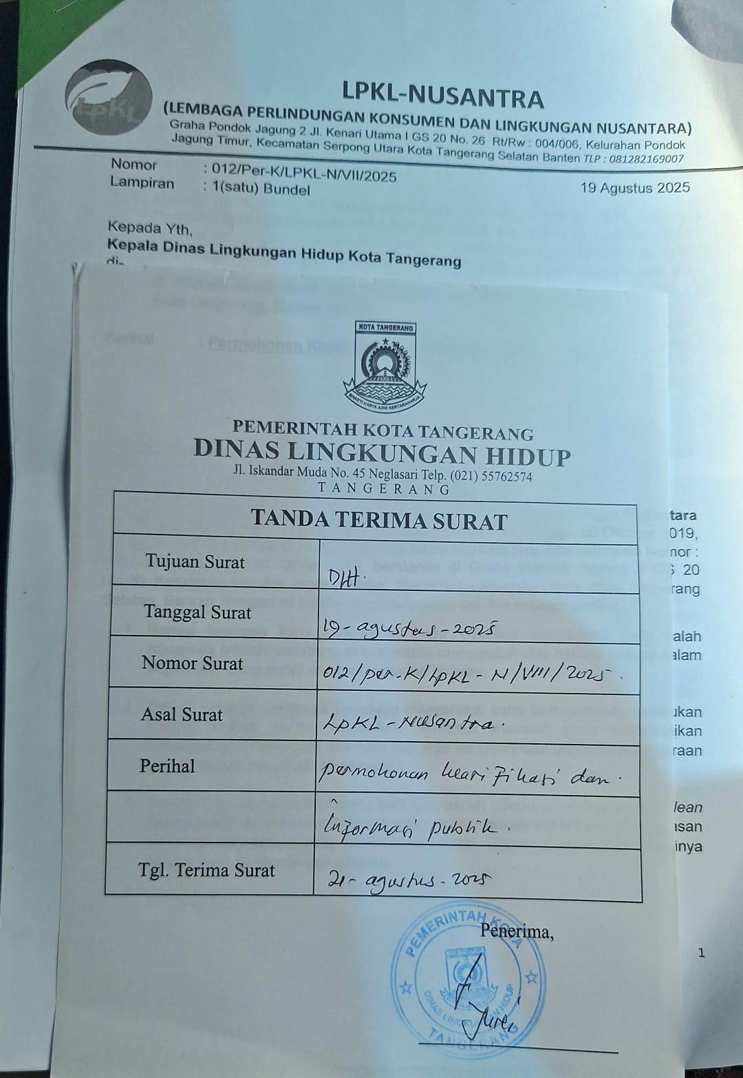 Tangerang.-Kalibernews.net._-//-**Surat Klarifikasi LSM LPKL Nusantara: Proyek PSEL Mandek, TPA Rawa Kucing Terjerat Hukum*TANGERANG – Lembaga Swadaya Masyarakat Perlindungan Konsumen dan Lingkungan Nusantara (LPKL-Nusantara) melayangkan surat klarifikasi resmi ke Dinas Lingkungan Hidup (DLH) Kota Tangerang pada Rabu, 20 Agustus 2025.