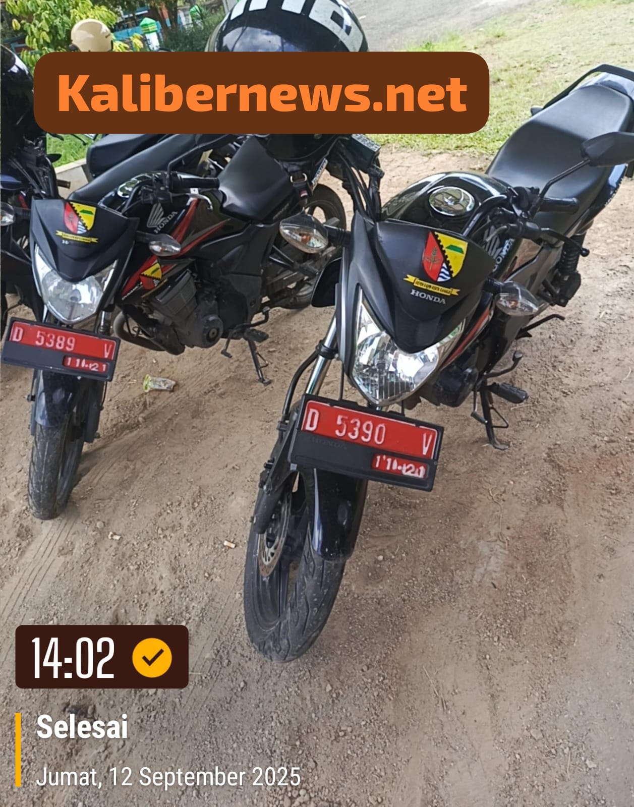 Kendaraan operasional roda dua tersebut ber merk Honda Verza yang memiliki plat Nomor Polisi D 5390 V. 11-21 dan D 5389 V.11-21, hal ini berdasarkan hasil investigasi/Liputan Pimpinan Redaksi dan anggota Media kalibernews.net. Jum.at 12/9/2025.