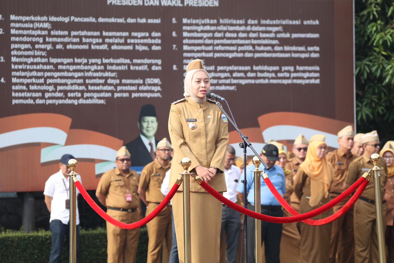 GARUT,-Kalibernews.net.-//– Wakil Bupati Garut, Putri Karlina, memimpin Apel Gabungan yang bertempat di Lapangan Sekretariat Daerah (Setda) Kabupaten Garut, Jalan Pembangunan, Kecamatan Tarogong Kidul, Senin (13/10/2025). Dalam amanatnya, Wakil Bupati menyoroti pentingnya etos kerja yang rasional serta tantangan perbedaan antar generasi Aparatur Sipil Negara (ASN).