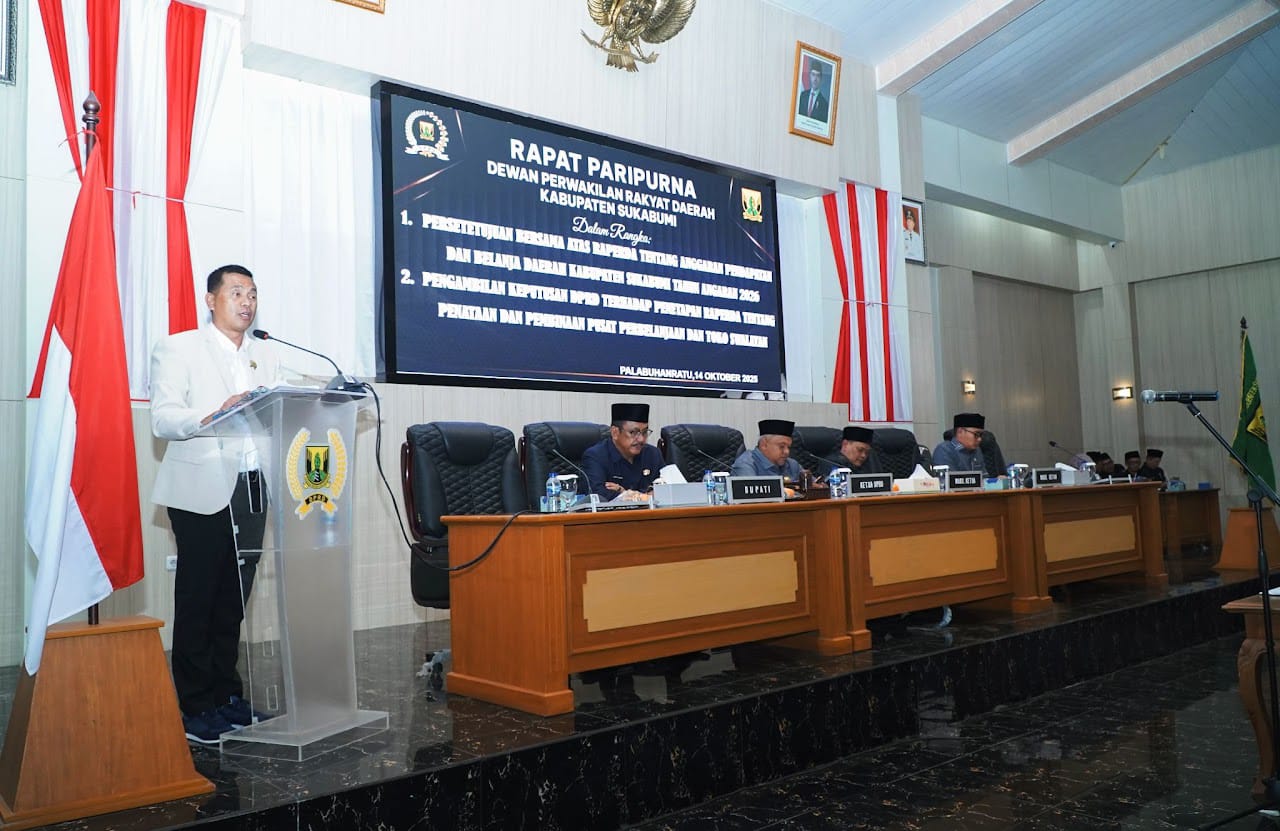 8. Penyampaian Pendapat Akhir Bupati Mengenai Raperda tentang Anggaran Pendapatan dan Belanja Daerah Kabupaten Sukabumi Tahun Anggaran 2026 dan Raperda tentang Penataan dan Pembinaan Pusat Perbelanjaan dan Toko Swalayan.