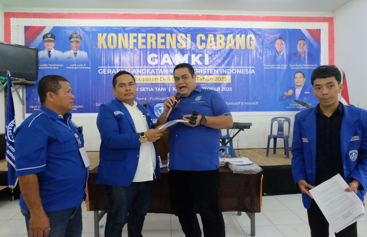 Deli Serdang,-Kalibernews.net._//- Jonni Naibaho Terpilih kembali sebagai Ketua DPC GAMKI Kabupaten Deli Serdang Masa Bakti 2025-2028 secara Aklamasi yang dilaksanakan melalui Konferensi Cabang Pengurus DPC GAMKI Kabupaten Deli Serdang Di PJ GBI Setia Tani kecamatan Patumbak Kabupaten Deli Serdang Sumatera Utara.
