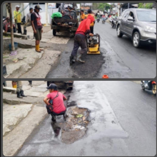 Hanya beberapa jam setelah laporan diterima, petugas lapangan langsung melakukan perbaikan sementara menggunakan metode tambal cepat (patching) dengan aspal hotmix untuk mengatasi lubang jalan yang berpotensi membahayakan pengguna jalan.