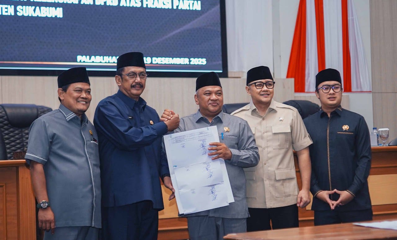 Perubahan tersebut menjadi dasar penetapan perubahan Keputusan DPRD tentang Keanggotaan dan Susunan Alat Kelengkapan DPRD Kabupaten Sukabumi Masa Jabatan 2024Dewan Perwakilan Rakyat Daerah (DPRD) Kabupaten Sukabumi menyelenggarakan Rapat Paripurna ke-43 Tahun Sidang 2025 di Ruang Rapat Utama DPRD Kabupaten Sukabumi, Jumat (19/12/2025).