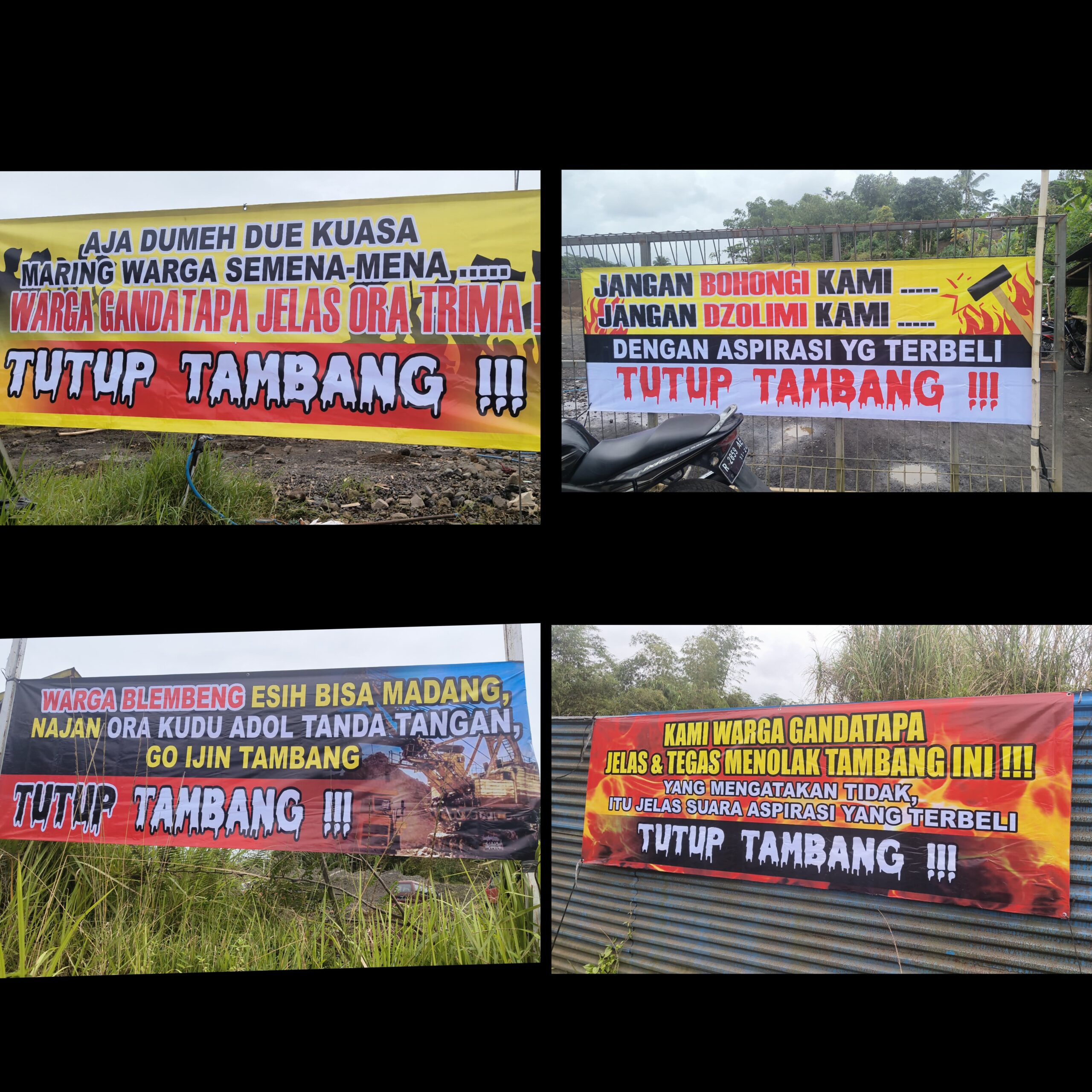 Jateng.-Kalibernews.net.-//-Penolakan tambang galian C di desa gandatapa kecamatan sumbang kab.Banyumas jawa tengah bersama warga masyarakat yang berdatang sekitar 100 orang untuk memasang banner ada 4 banner yang sudah terpasang di lokasi tambang pada tanggal 11 Januari 2026 jam 11.00 AM dan juga ada pengamanan dari pihak kepolisian setempat untuk menjaga ketertiban pemasangan banner,