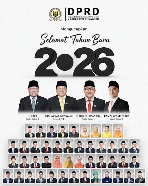Sukabumi.,-Kalibernews.net.,-//-Keluarga Besar DPRD Kabupaten Sukabumi mengucapkan selamat tahun baru 2026 kepada seluruh masyarakat. Semoga di tahun yang baru ini, kita semua diberikan kesehatan, kebahagiaan, dan keberkahan.