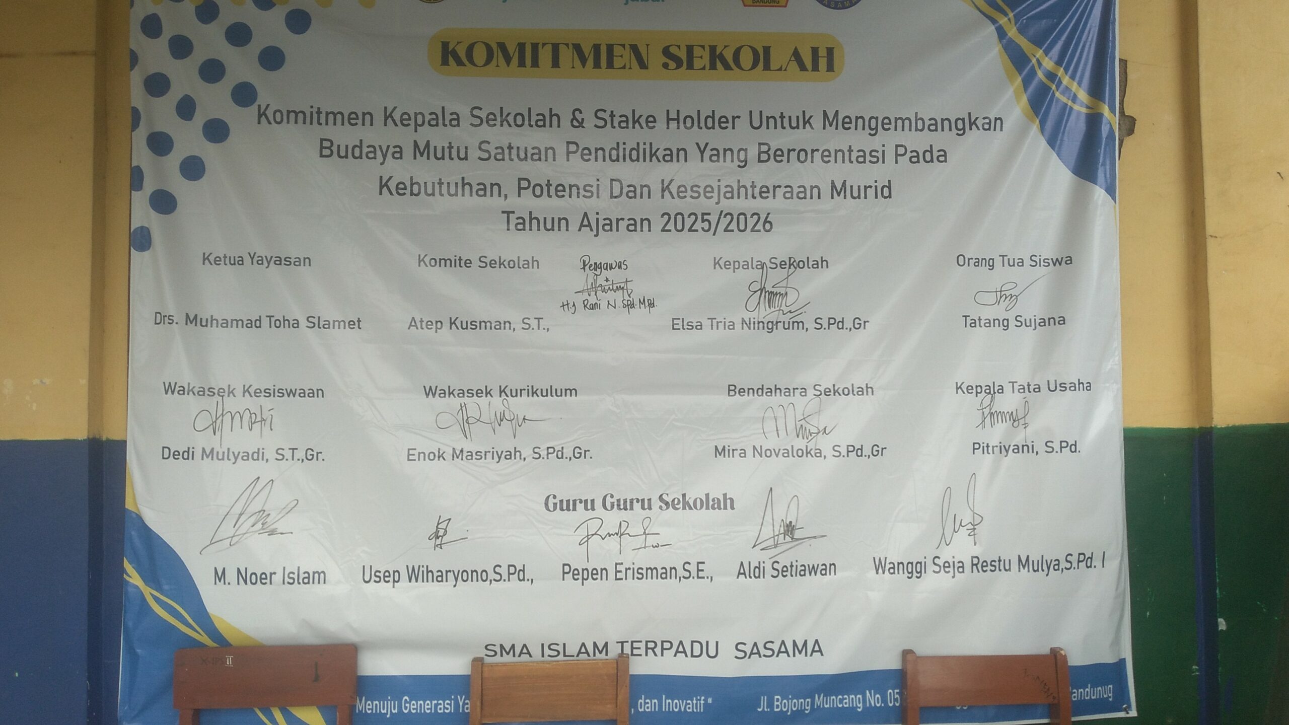 Lanju Kepala Sekolah menambahkan Dalam hal ini SMA IT Sasama “Berkomitmen pada sekolah & Stake holder untuk Mengembangkan Berbudaya Malu Satuan Pendidikan Yang Berorientasi pada Kebutuhan Potensi Dan Kesejahteraan Murid Tahun Ajaran 2025 – 2026.