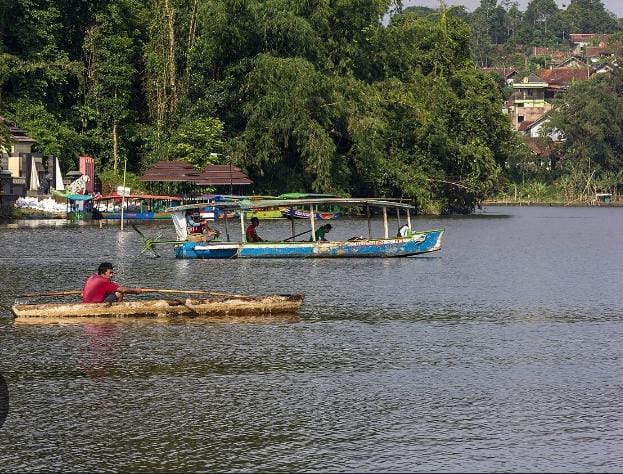 Hanya dengan Rp25.000, mereka sudah bisa mencicipi kedamaian telaga, termasuk biaya menyeberang untuk menemukan hening di tengah pulau.