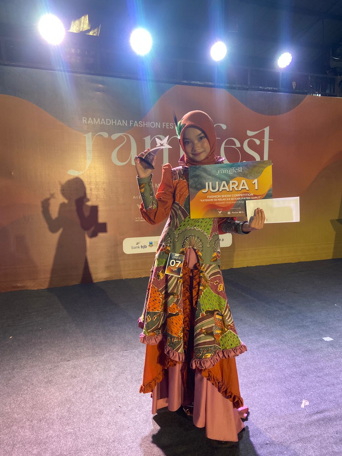 Siswi berbakat asal Karangtengah ini tampil memukau dan keluar sebagai Juara 1 Fashion Show Competition tingkat SD.