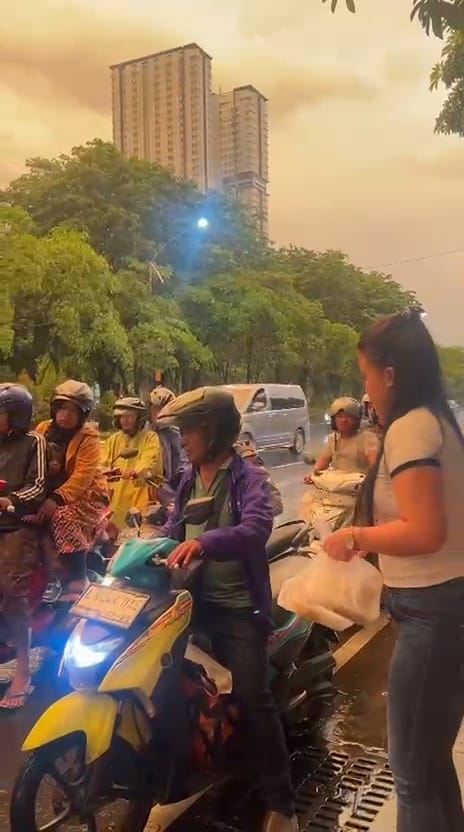 Sejumlah anggota Team DJ Cindi Aurora Official dengan penuh semangat turun langsung ke jalan untuk membagikan ratusan paket takjil kepada pengendara motor, sopir angkutan, hingga pejalan kaki yang melintas.