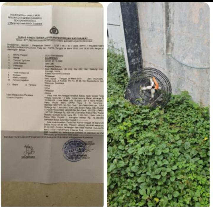 Atas kejadian tersebut, pelapor segera mendatangi Polsek Wonocolo untuk membuat laporan resmi guna proses penyelidikan lebih lanjut.