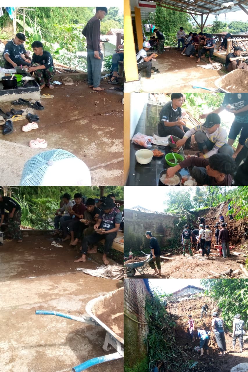 Sementara terpantau awak media dilokasi Senin 13/3/2026 tampak puluhan warga, ketua RT, Ketua RW dan beberapa anggota Linmas sedang melakukan gotong royong membantu membersihkan material longsoran baik yang didalam ruangan maupun di luar ruangan.