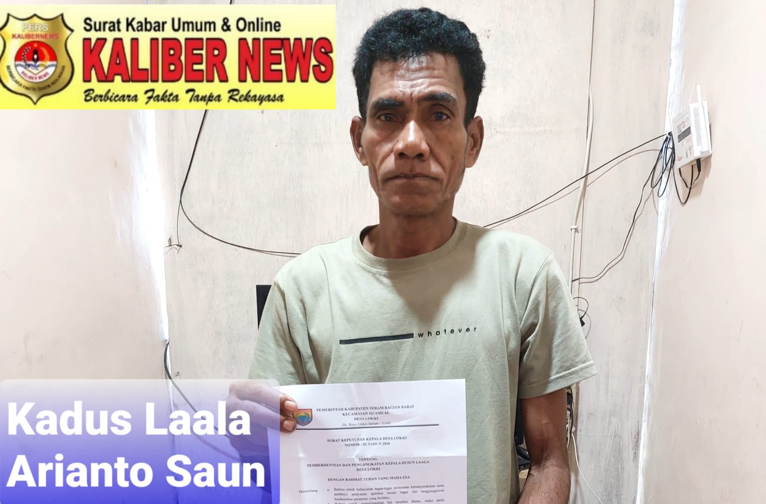 Kepala Dusun laala Arianto saun yang di temui media ini pukul 09 :20 WIT di kediamannya di dusun laala, membenarkan telah menerima SK Kepala Dusun yang di terbitkan oleh Pj Kepala Desa loki atas nama salmon frans primahua yang di antar Oleh seorang masyarakat Dusun laala.